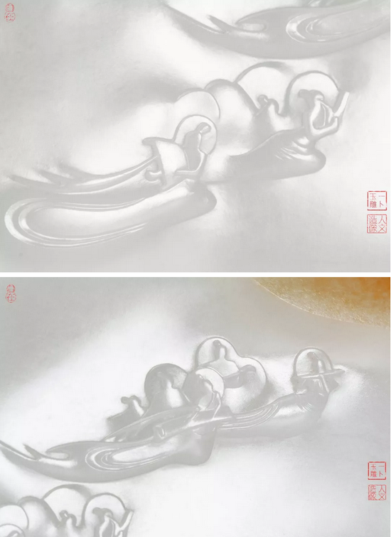 而在此种“线”的延绵节奏中,时空无际,妙想迁得。飞天舞乐,应机跃动;佛光神隐,空明温厚。亦动亦静,亦虚亦实,飞动而含蓄,浑如音乐的节奏韵律,‘空中有物,物中有声,一草一木栖神明’。