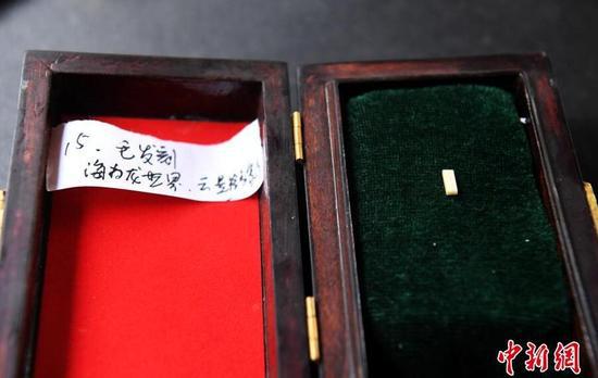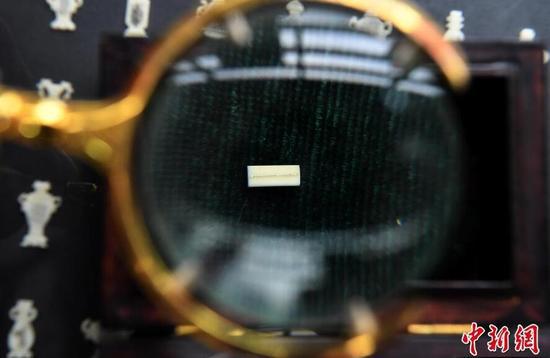 6月23日,2018重庆与世界嘉年华活动上,重庆璧山区潘启慧老人展出自己不少微刻作品,其中最小的微刻作品字号细如毛发,只能借助放大镜观看